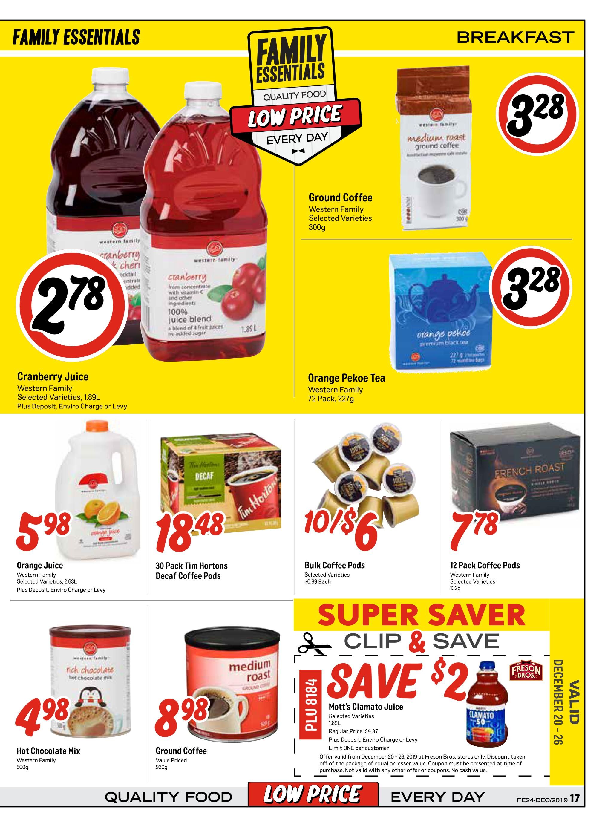 Freson Bros. Family Essentials Flyer November 29 to December 26